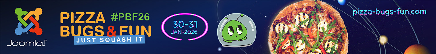 <a href="https://www.pizza-bugs-fun.com" target="_blank"><img src="https://www.pizza-bugs-fun.com/images/promotion/2026/01/pbf26-01_small-j2.jpg" alt="Joomla! Pizza, Bugs and Fun - 30 y 31 de enero de 2026"></a>